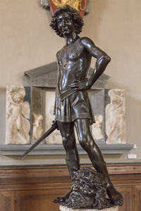 このダヴィデ像もこの美術館自慢の収蔵品で、ルネッサンス全体で見ても際立った名作と呼べる作品です。華奢で細身の少年はドナッテロのダヴィデ像の流れを汲んでおり、この時代の流行や街の勢いといったものまで感じさせてくれます。