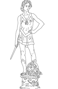 像の高さは125cmで等身大よりやや小さく、表面の仕上がりはドナッテロのダヴィデ像より丁寧に仕上げられています。衣服の細かな文様も背面までしっかり刻まれており、あらゆる点でドナッテロを凌駕しようとするヴェロッキオの気迫を感じます。